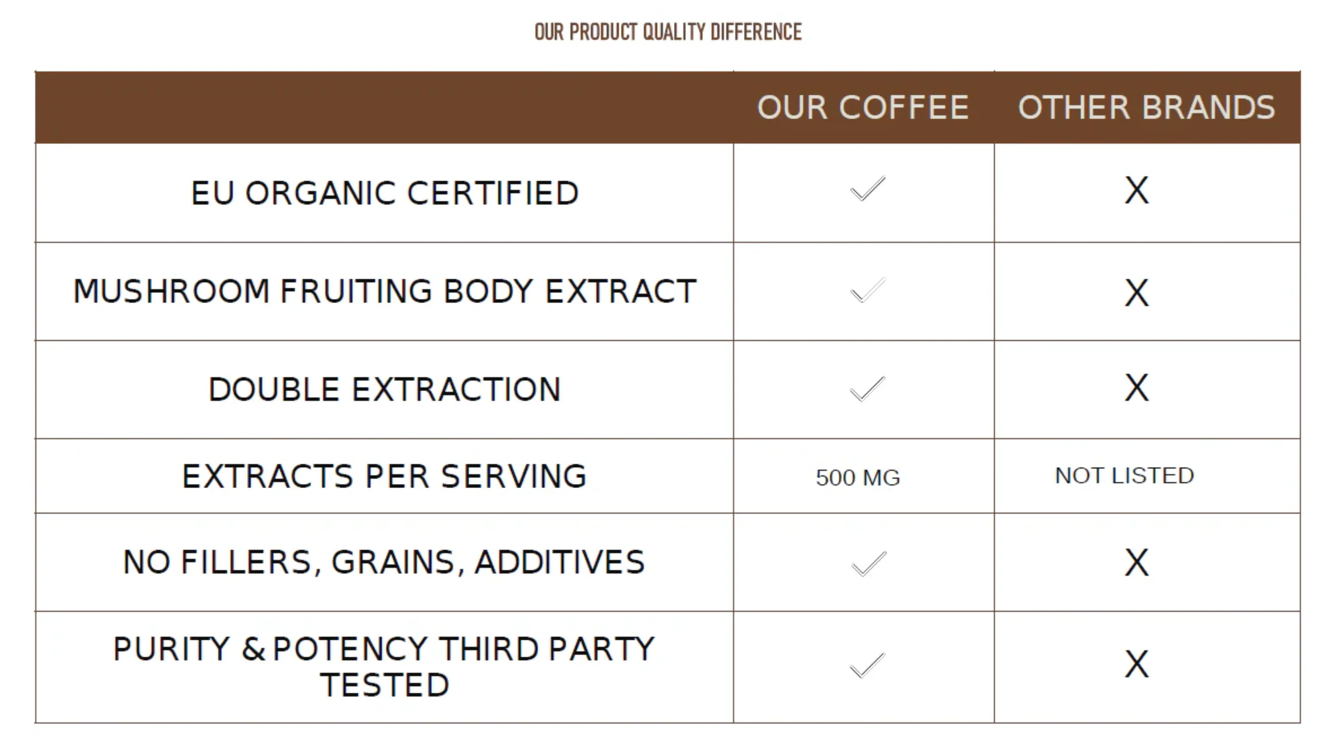 - 3 tablespoons of ground coffee delivers 500 mg Mushroom Extract Blend